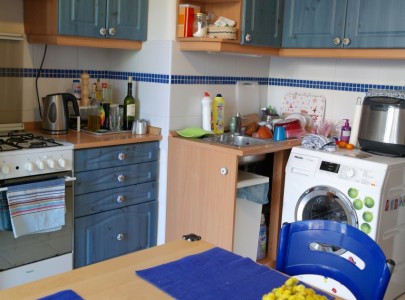 A lakás tartozéka még a berendezett és gépesített konyha.