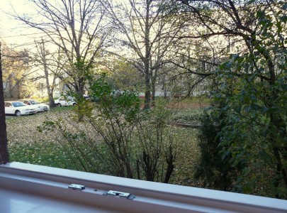 A környéken vidéki nyugalom honol, a lakás ablakai a környező parkra néznek, ahonnan a lombok suhogásán és a madarak dalán kívül más szinte nem is hallható.