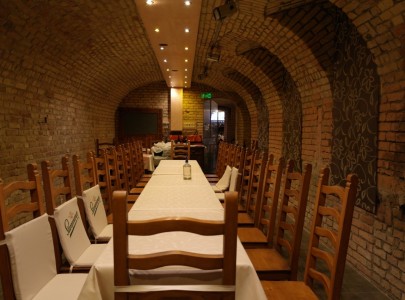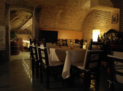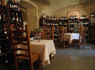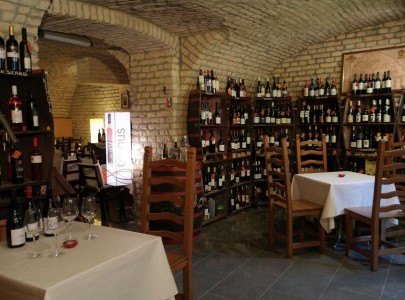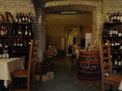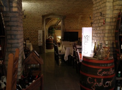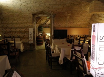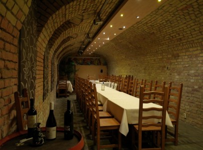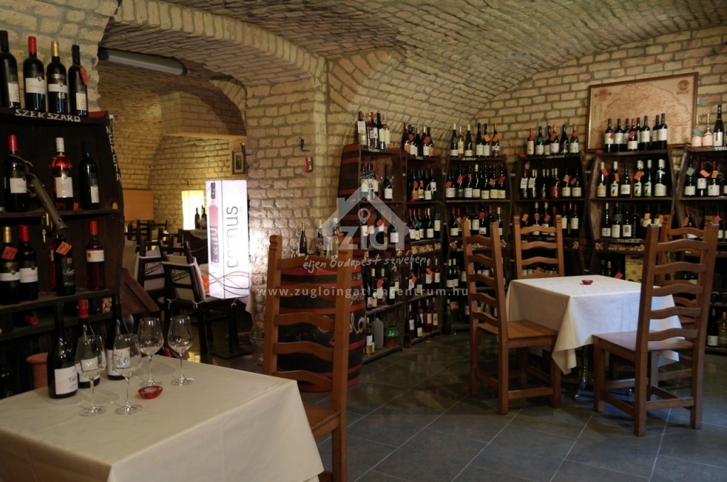 A mellette található (jelenleg átjáróval összekötött, de külön utcai bejárattal is rendelkező) gurmé borozó, étterem és különtermi rész (összesen 180m2) terméskő és tégla burkolatával és íves falaival autentikus borospince hangulatot áraszt, mindezt igényességgel és kifinomult stílussal karöltve. A jelenlegi kínálat bármely sommelier igényét kielégítené. Ez a rész 68 férőhelyes +maximum 20%.