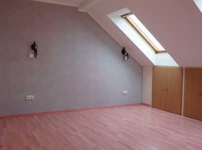 Beosztása optimális, alul amerikai konyhás-étkezős nappali, egy nagy gardróbszoba és egy wc. Fent pedig a hálószoba és egy tágas sarokkádas fürdőszoba.