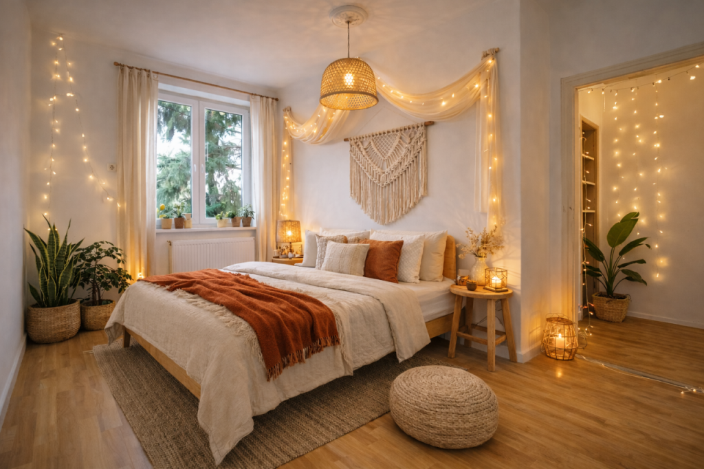 - a szoba délkeleti, míg a konyha nyugati tájolású -így minden napszakban napsütötte az enteriőr