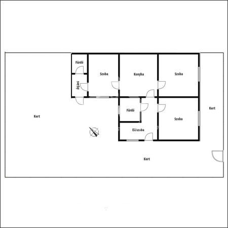 A telek és a ház saját, 1/1 tulajdon. A kert mérete ideális, a mostani tároló eltávolítása után gyönyörű nagy gyep felület áll az új tulajdonos rendelkezésére.