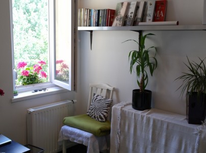 A lakás ablakai gyönyörű ősfás parkra tekintenek, amely mentes a forgalomtól. Keleti tájolásnak köszönhetően kora délutánig közvetlenül beáramlik a napfény, de a lakás egész nap világos és vidám hangulatú. Valamint nagyon csendes!