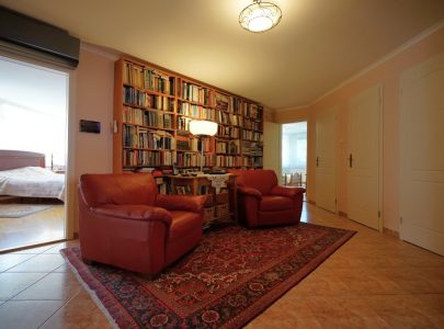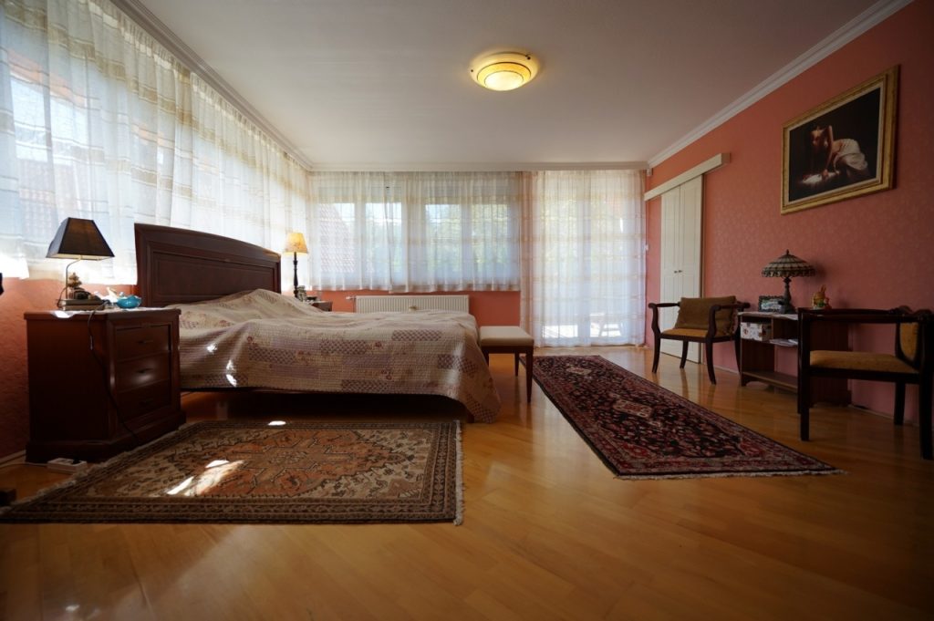 A tágas közlekedőből nyíló, hatalmas, ablak ablak hátán jellegű hálószobák, a mellettük található ízléses, nagy méretű fürdőszobák, a kapcsolódó teraszok láttán biztosak lehetünk benne; itt nem gond sem a szeparált nyugodt pihenés, sem a reggeli, egyidejű sürgés-forgás, mert mindenütt a bőséges térérzet kellemes feelingje vesz körül bennünket.