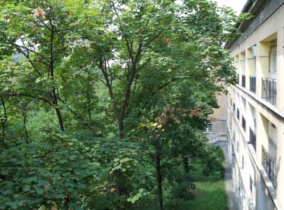 A környéken vidéki nyugalom honol, a lakás ablakai a környező park fáira és a csendes Bolgárkertész utca felé tekintenek.