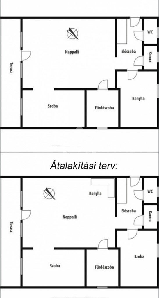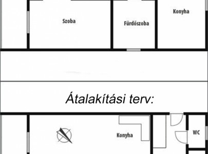 A lakás beosztása optimális, ám ezen felül ha szükség lenne még egy hálószobára, az alaprajzon látható átalakítási terv alapján ez könnyedén megvalósítható.