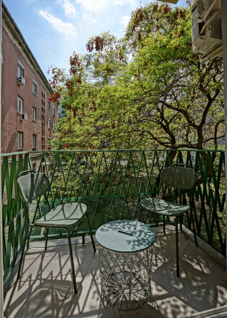A lakás koronaékszere a csendes kis hátsó parkra tekintő erkély. Itt reggeltől estig nyugalom van, tökéletes helyszín kiülni olvasni, relaxálni vagy akár bármelyik napszak étkezéséhez -egy kis romantikus hangulattal megspékelve…