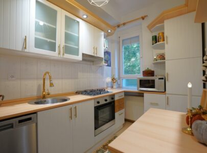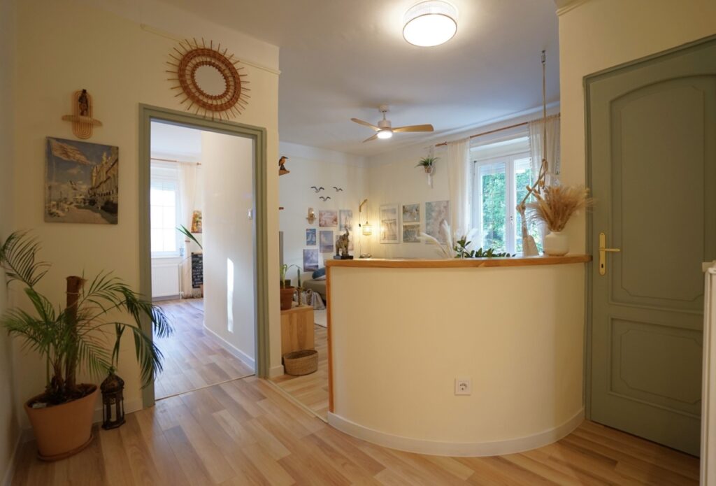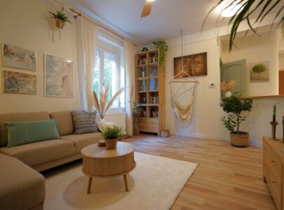 A felújítás saját részre történt, minőségi és ízléses anyagok felhasználásával. A végeredmény egy kimondottan bájos, életteli és nagyon jó hangulatú otthon lett!