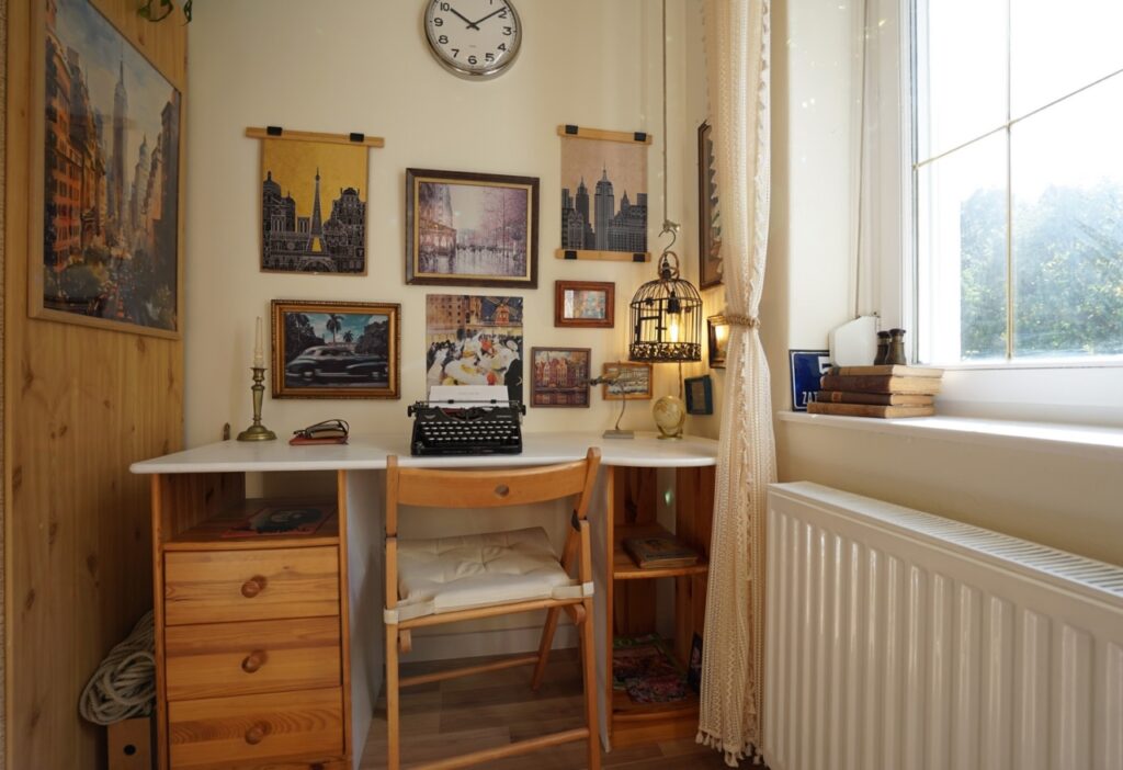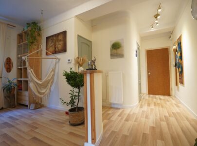Az enteriőr igazán szép világos és napsütötte, a dél és nyugati tájolású ablakoknak köszönhetően. Melyek a környező parkra tekintenek.