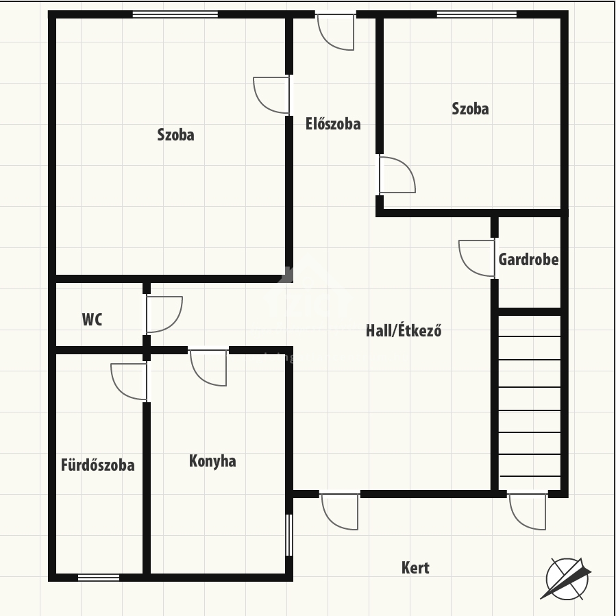 A ház tájolása is ideális, a szobák dél-keleti, míg a hátsó rész nyugati fekvésű. Így az ingatlan minden napszakban világos-napsütötte.