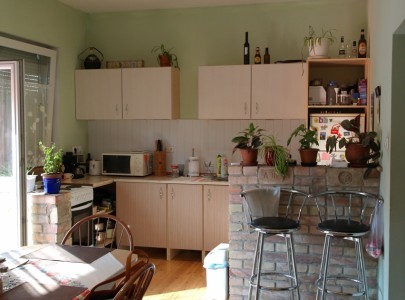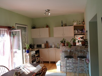 A felújítás során a falak tégláig le lettek csupaszítva, minden vezeték, cső és burkolat vadonat új, még a tető is! A felhasznált anyagok igényesek és harmonizálnak egymással. A végeredmény egy nagyon vidám hangulatú és szerethető otthon lett.