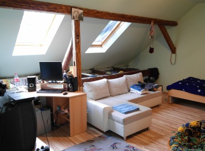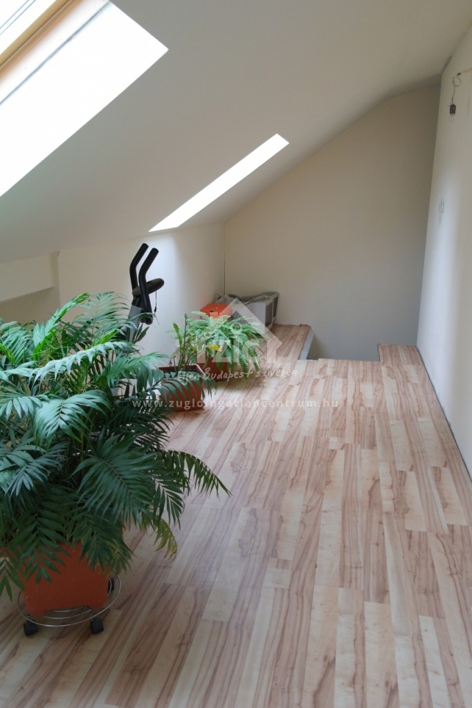 A felújítás során a tetőtér is beépítésre került, itt található két hatalmas szoba (jelenleg az ifjúsági szekció) és egy sarokkádas fürdőszoba. A ház pár apró simítástól eltekintve tökéletes állapotban van. A ház lakóterülete bruttó 154, nettó 118m2, valamint 16m2 terasz, 20m2 tároló és 21m2 garázs.
