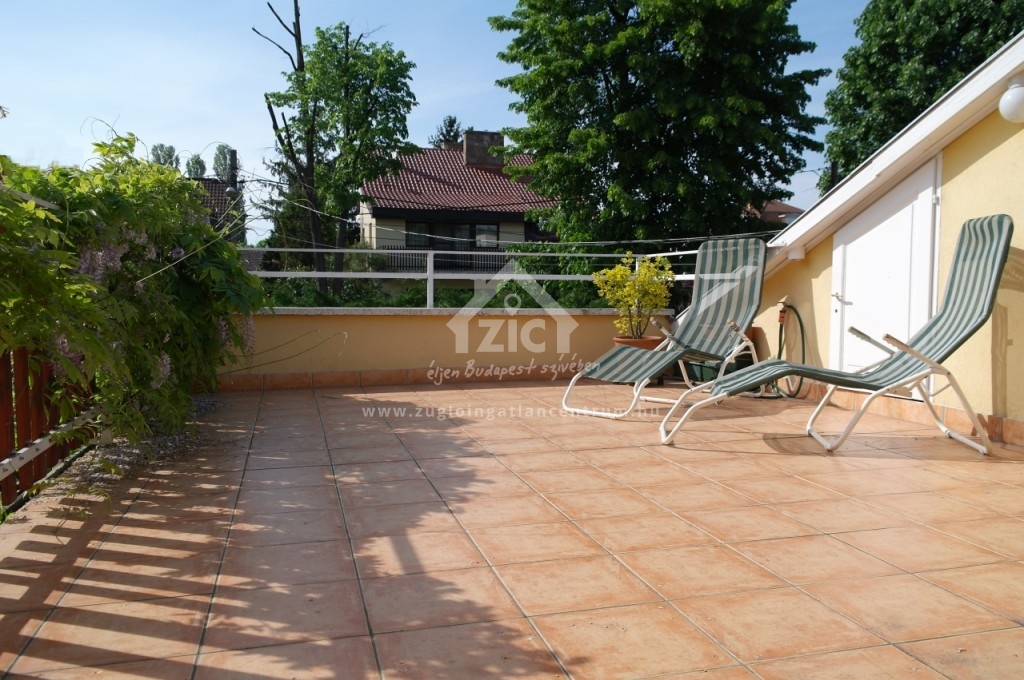 Az emeleten három teljes méretű hálószoba és a kádas fürdőszoba található. De az igazi élmény a hatalmas, 26 m2 terasz! Ez igazi paradicsom nyáron; a környező lombok suhogásával és a napsütéssel kényeztetve itt nyugodtan pihenhet, olvashat, napozhat.. senki sem fogja zavarni!